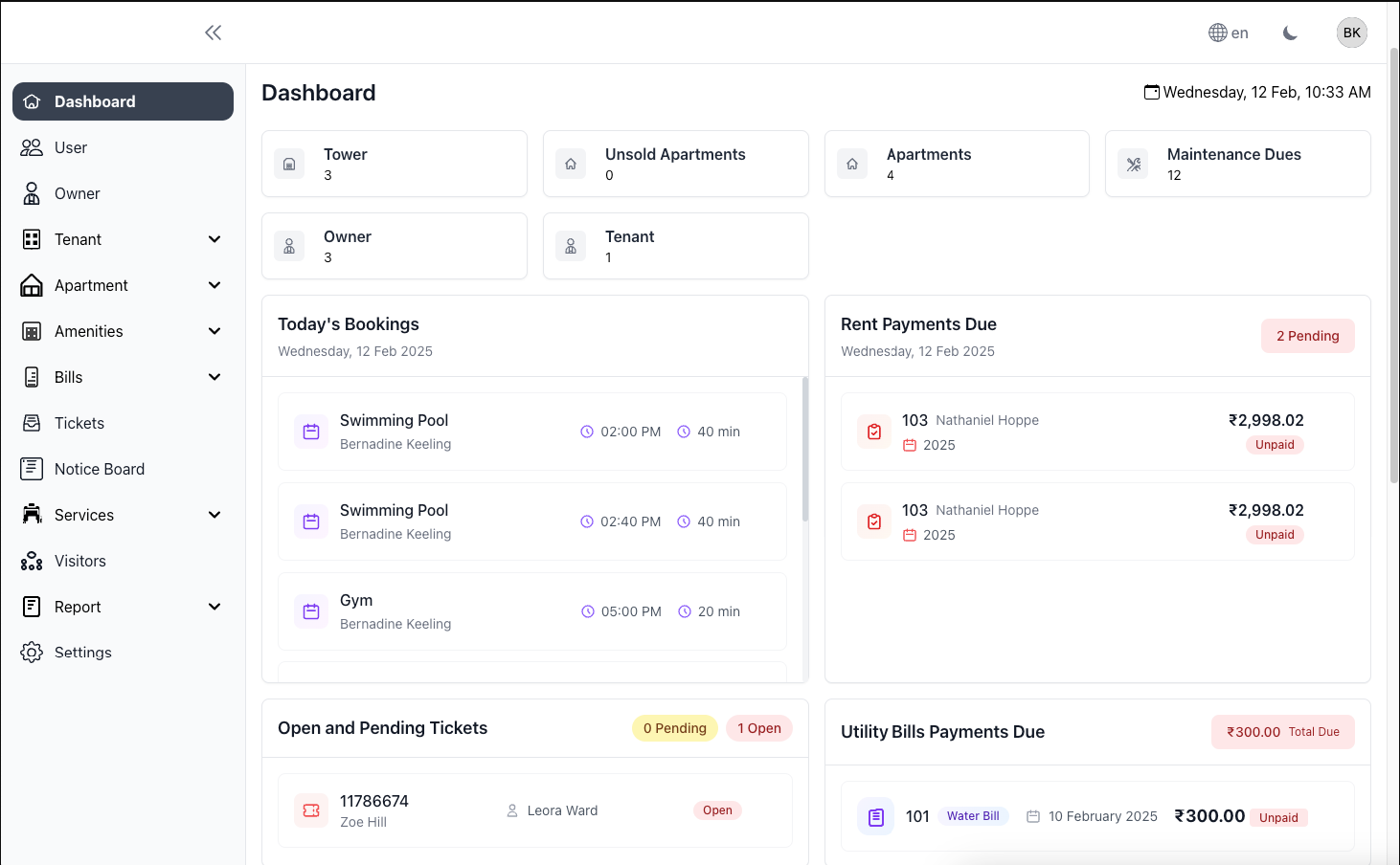 Streamline management of housekeeping, security and maintenance staff. Monitor schedules, track performance and ensure timely service delivery across all areas.